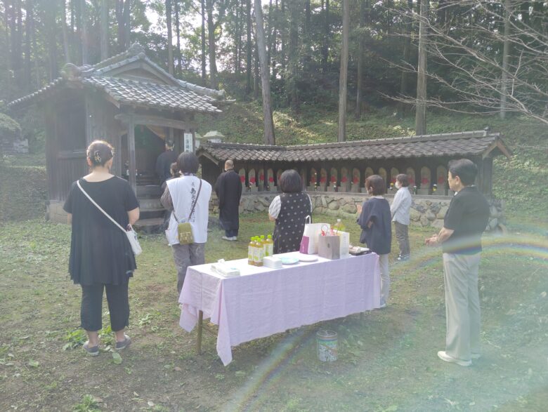 地域の方々も6名ほど参加され、お接待でお迎えしていただきました。ちなみに、写真に写る白衣姿は、相方のMiyataです。